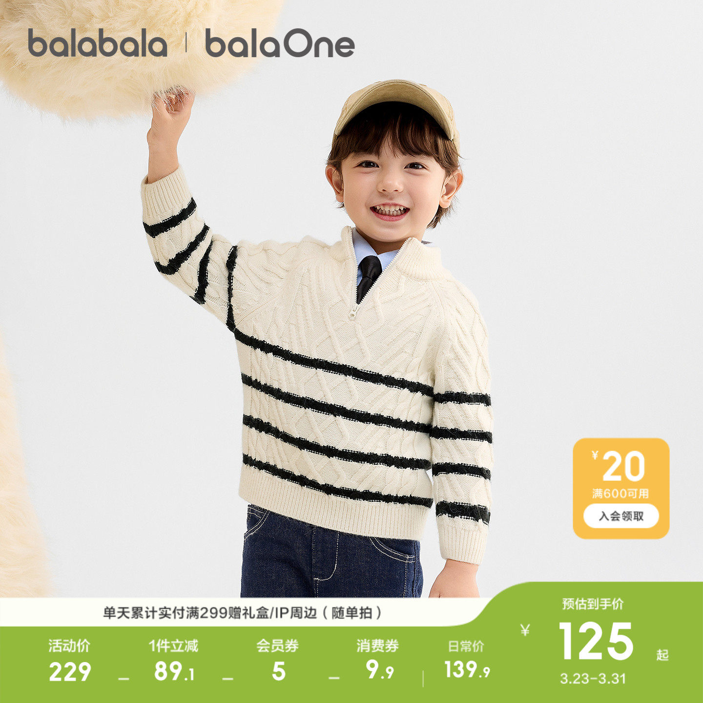 条纹针织衫 巴拉巴拉童装 套头毛衫 冬装 上衣潮 儿童毛衣男童2026新款