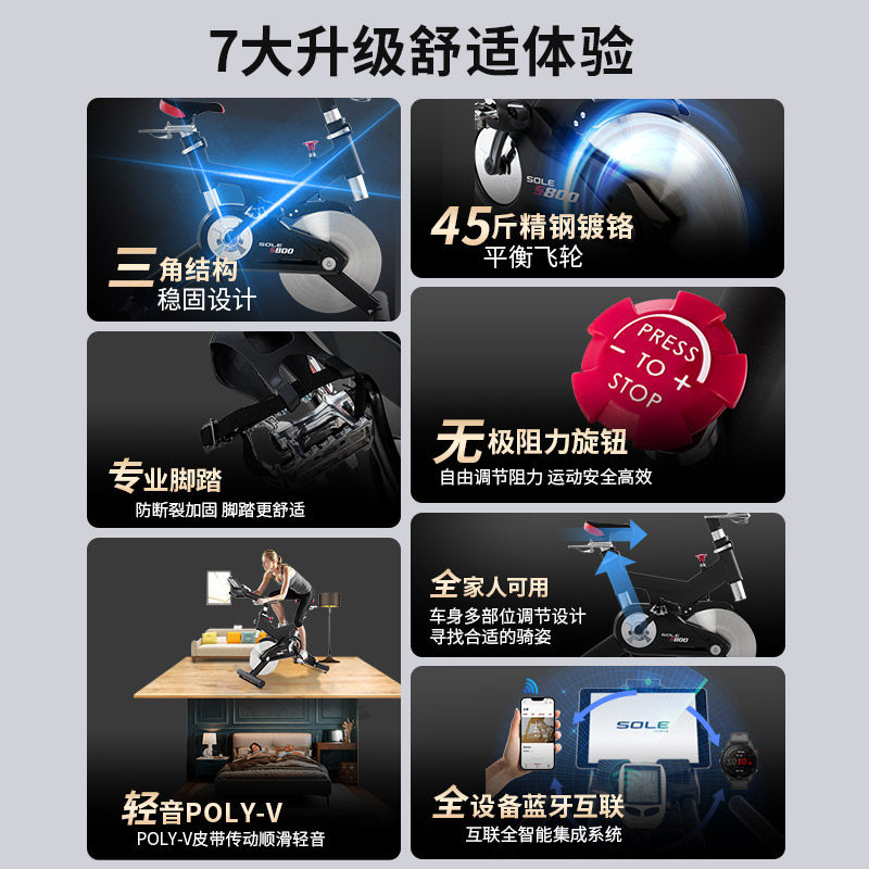 美国sole速尔S800进口动感单车家用磁控静音室内自行车商用健身房