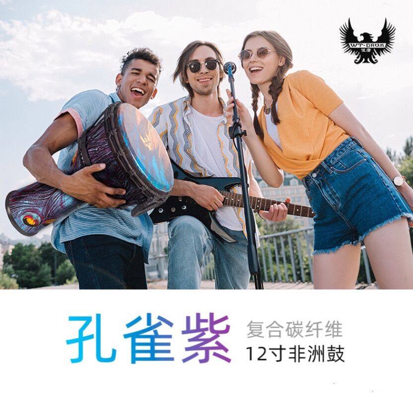 伍唐非洲鼓孔雀紫12寸进阶专业成人丽江拍打伴奏乐器便携手鼓