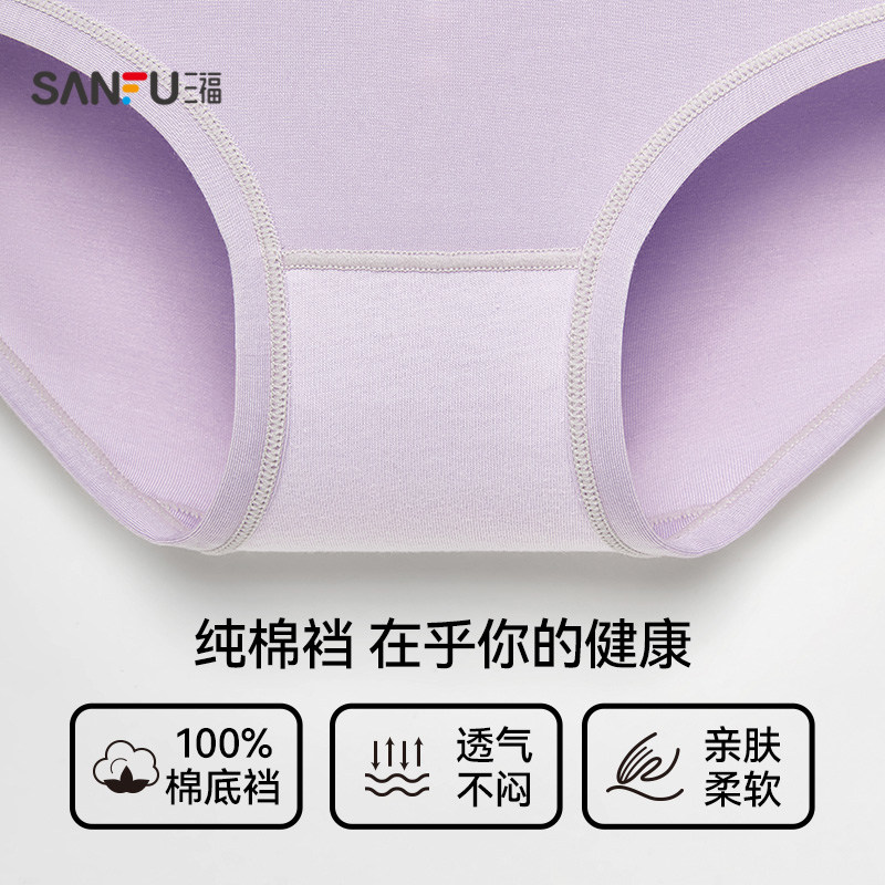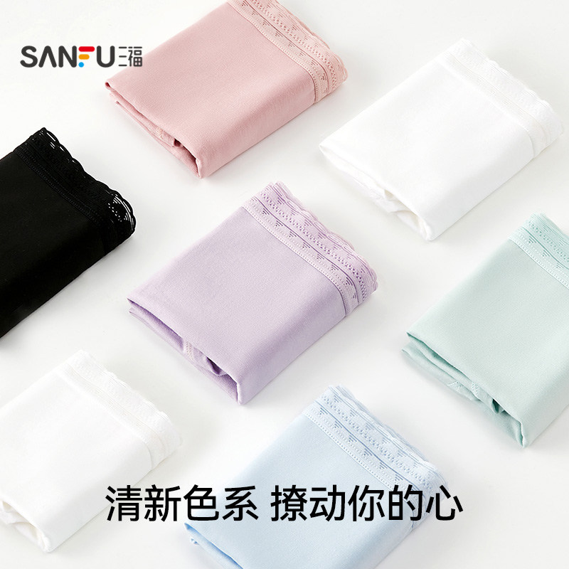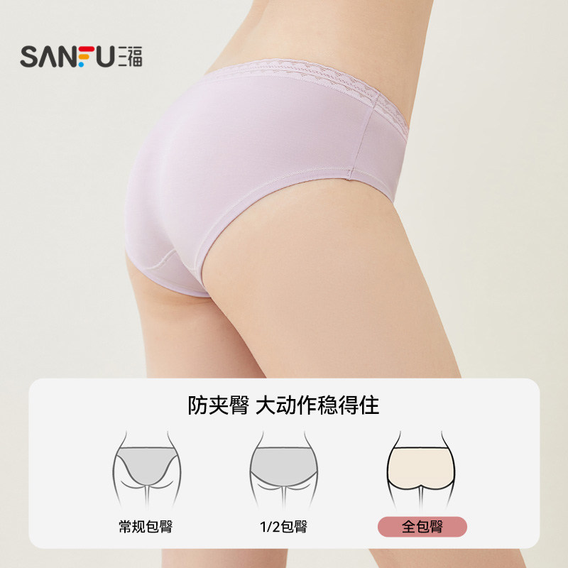 女简约纯色基础弹力包臀纯棉裆内裤 三福低腰内裤 60支莫代尔