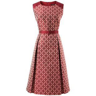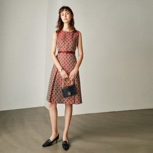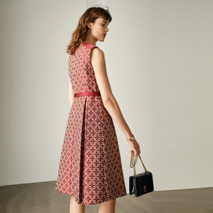 简约复古气质显瘦背心裙 2023年新款 颜域圆领印花无袖 连衣裙女秋季