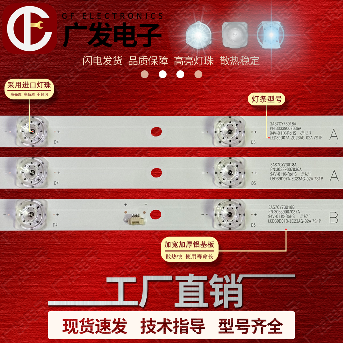30339007036 02A 3033900 ZC23AG 适用海尔摩卡40A6灯条LED39D07A