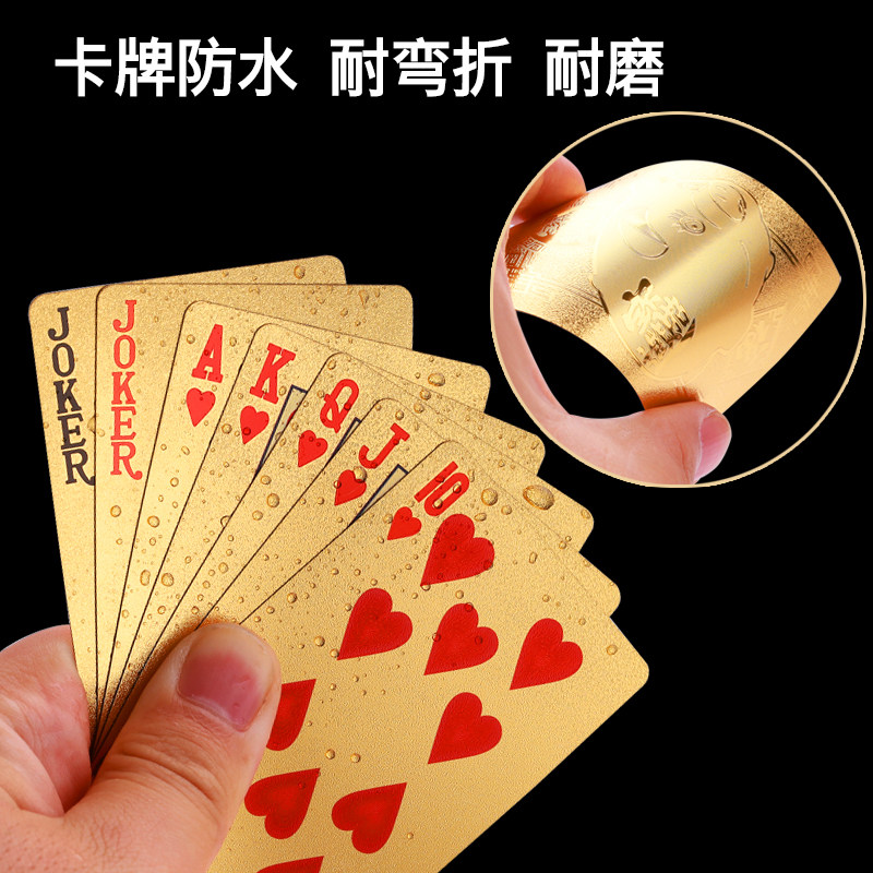 扑克牌PVC塑料扑克防水可水洗黄金色朴克土豪金金属创意加厚纸牌