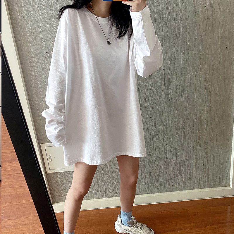 打底衫 内搭上衣大码 百搭 t恤女宽松显瘦韩版 2024秋冬棉质白色长袖