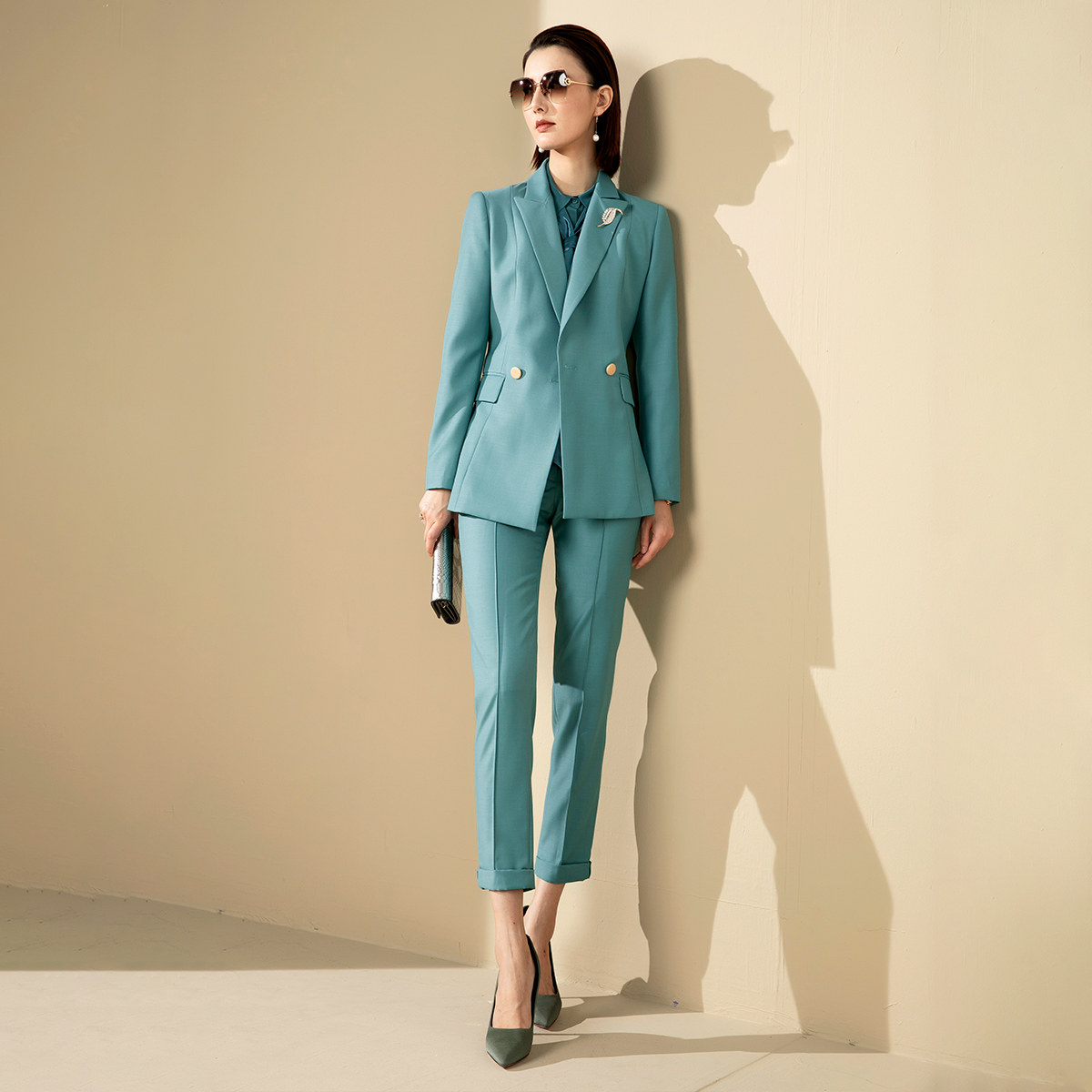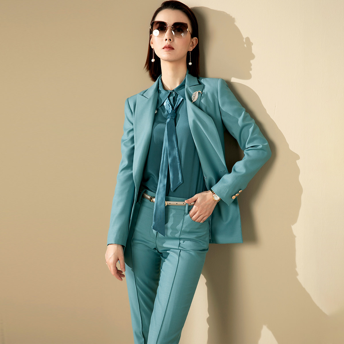 气质小西装 女裤 瘦高长裤 时尚 颈袖 西服正装 添香总裁套装