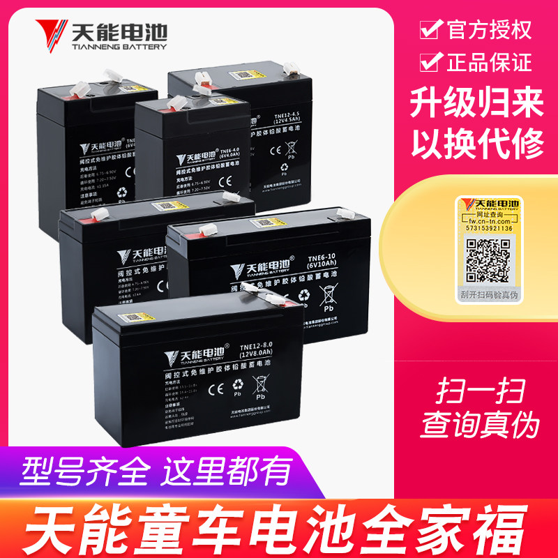 天能童车电池6V4V4.5AH10AH6伏12V7儿童三轮电动玩具车汽车小电瓶