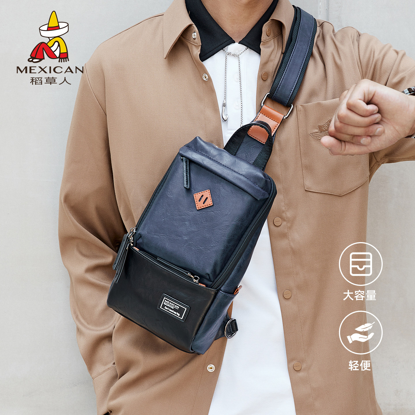 稻草人胸包男士 运动男生斜挎包休闲小背包大容量单肩包夏 包包新款