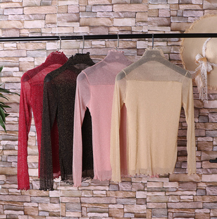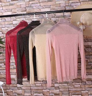 女装 木耳边蕾丝拼接上衣长袖 新款 时尚 打底高领T恤潮 韩版 2020春季