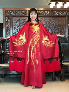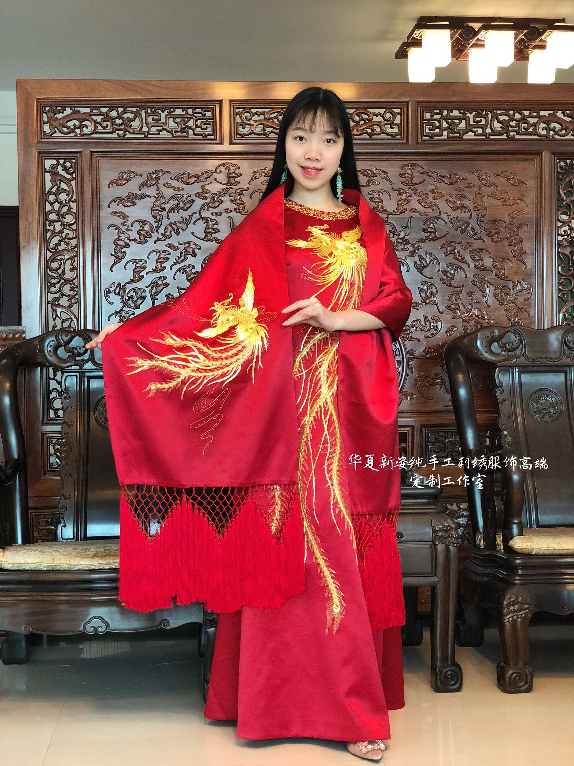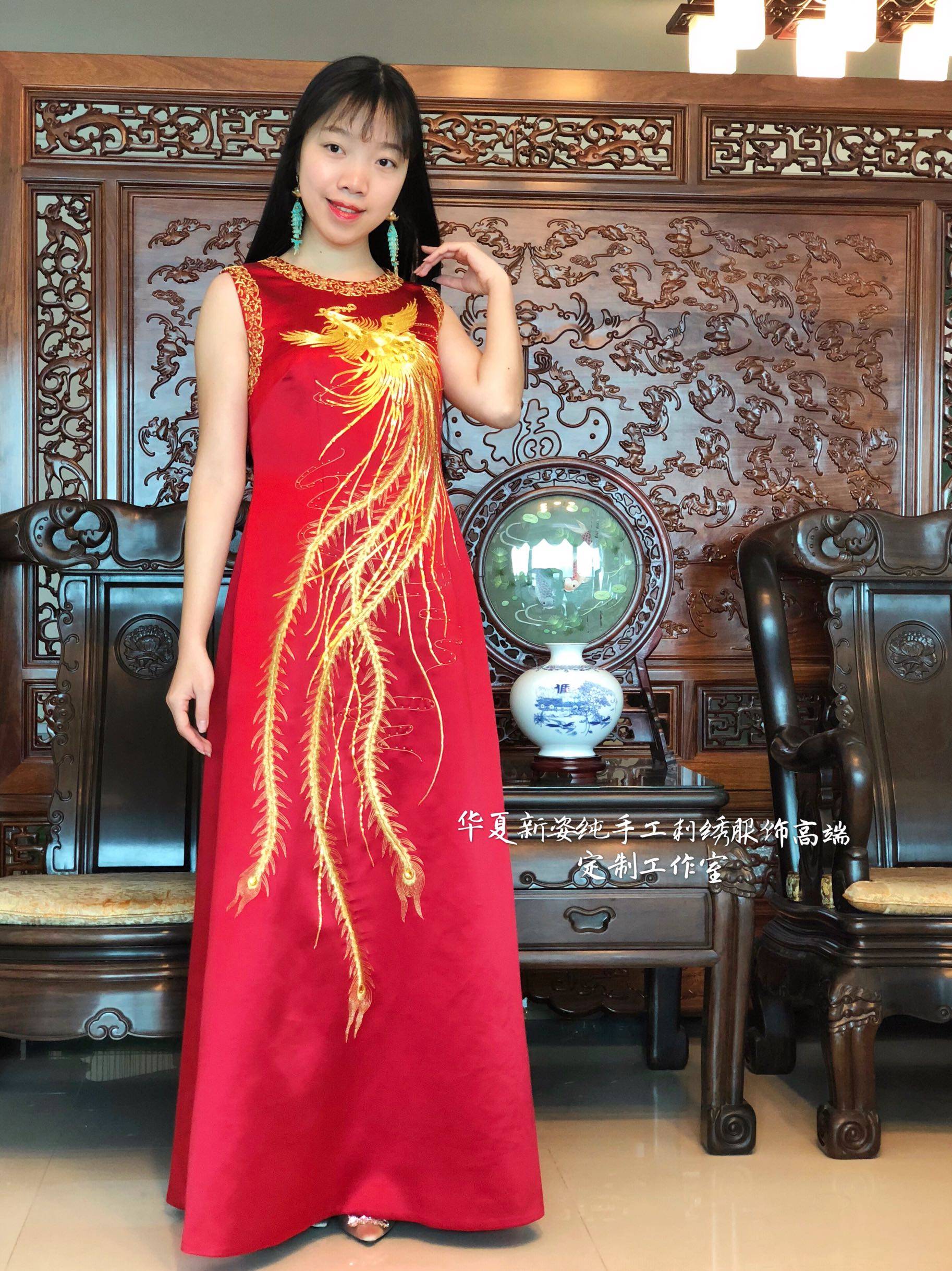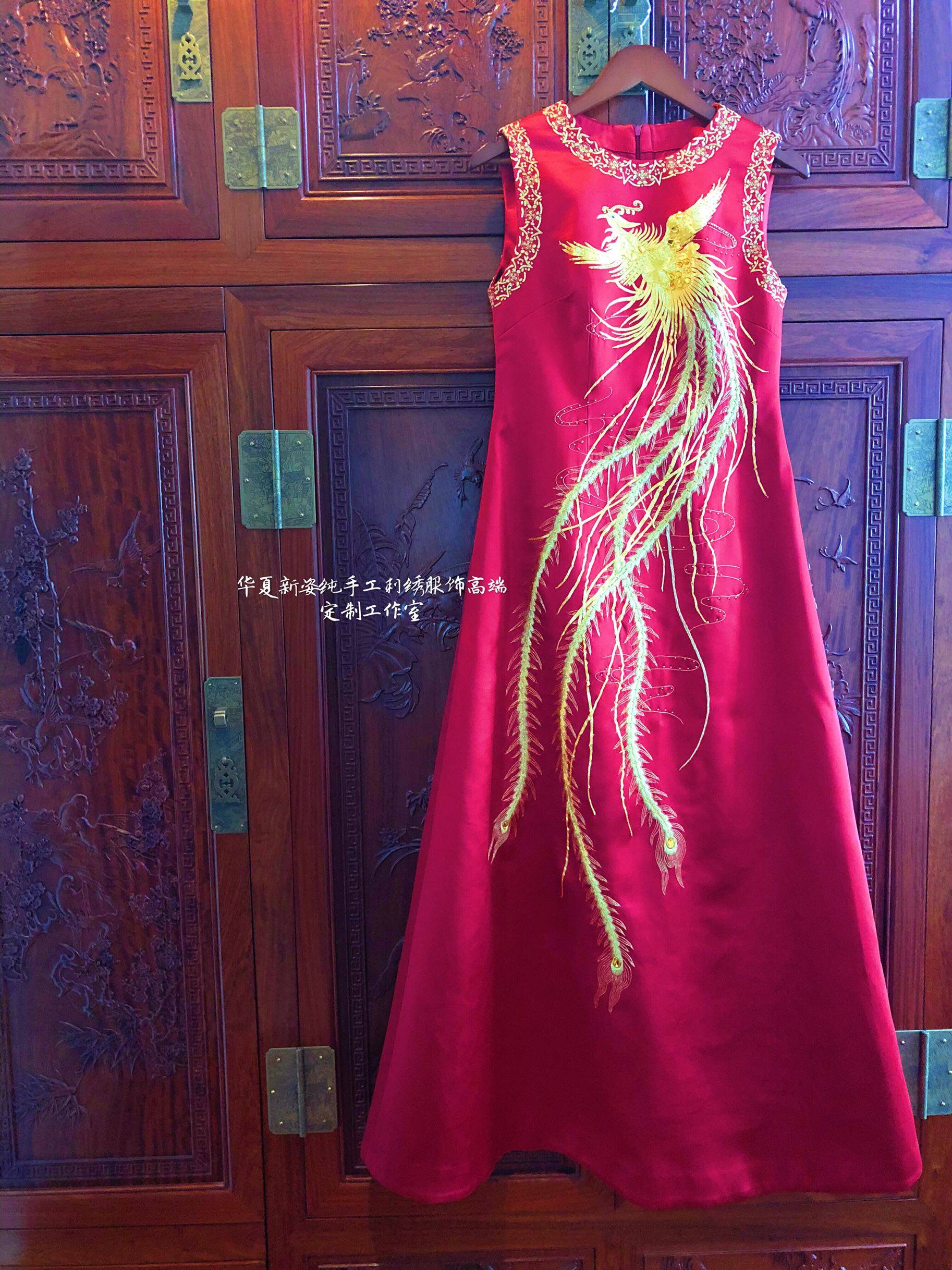 原创新中式 夏姿纯手工苏绣盘金绣凤凰高级成衣敬酒礼服婚服连衣裙