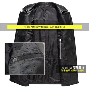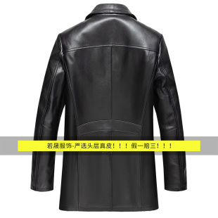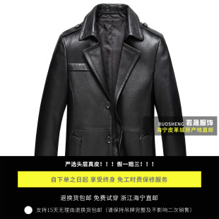 韩版 领外套翻领上衣修身 皮夹克 牛皮风衣西装 海宁真皮皮衣男中长款