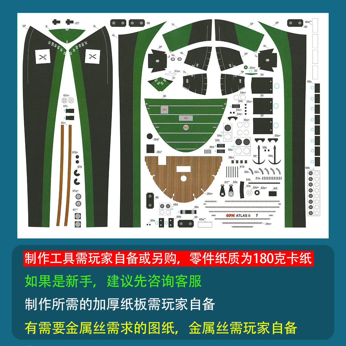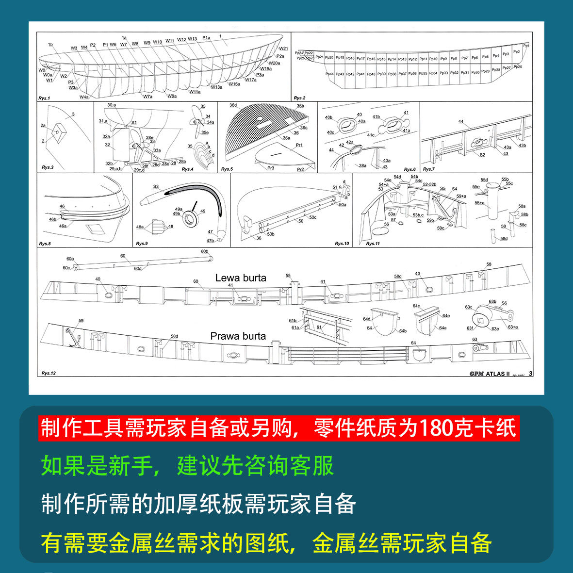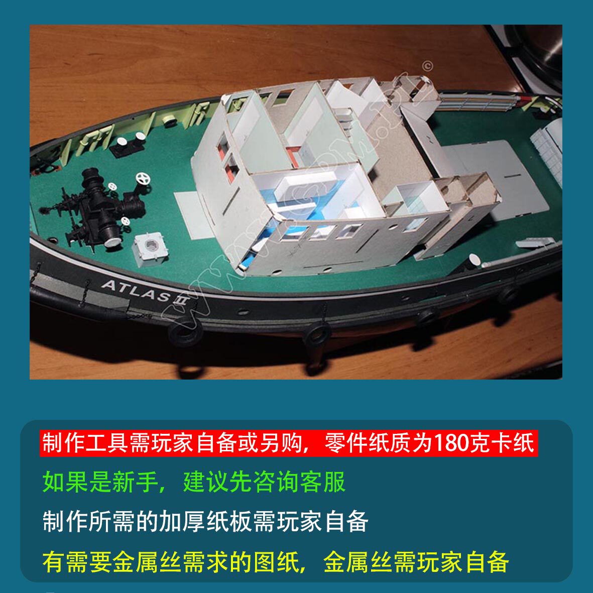 创意手工DIY非成品 50轮船模型拖船拼装 波兰Atlas II拖轮纸模型1