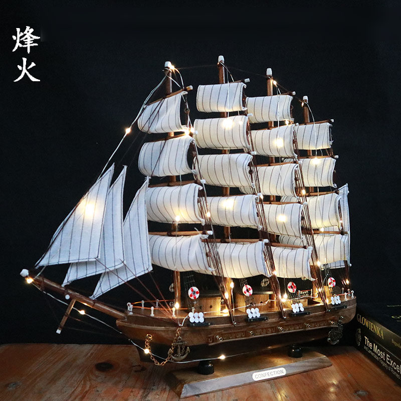 ins风木制一帆风顺复古大帆船模型摆件酒柜橱窗装 饰品开业送礼品