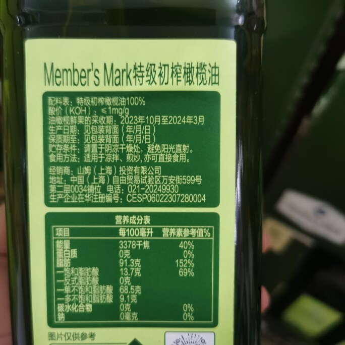 进口特级初榨橄榄油1L sMark西班牙原装 山姆会员超市代购 Member