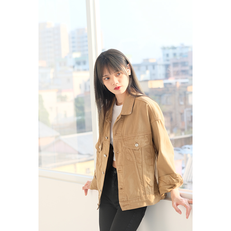 卡其色 宽松宽松百搭短款 牛仔外套女2024春季 韩版 上衣 新款 特价