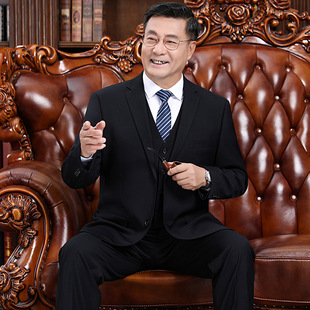 西服秋季 婚礼英伦风父亲成套中年男士 男套装 结婚中老年人爸爸西装