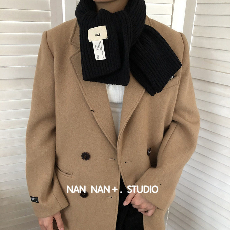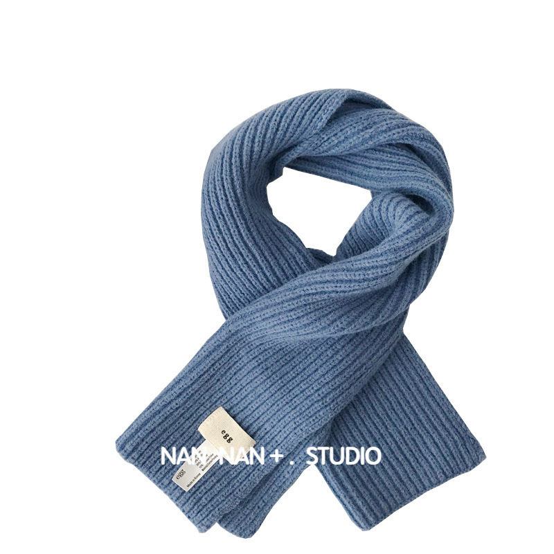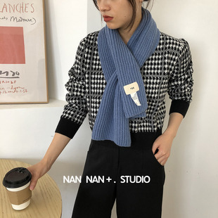 短款 纯色毛线针织围巾女冬百搭气质坑条懒人交叉围脖 韩国egg时尚