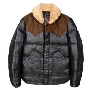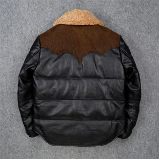 599元 真皮羽绒服男牛皮拼接磨砂牛皮带羊毛领白鸭绒真皮皮衣男