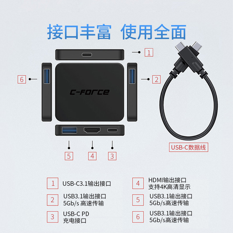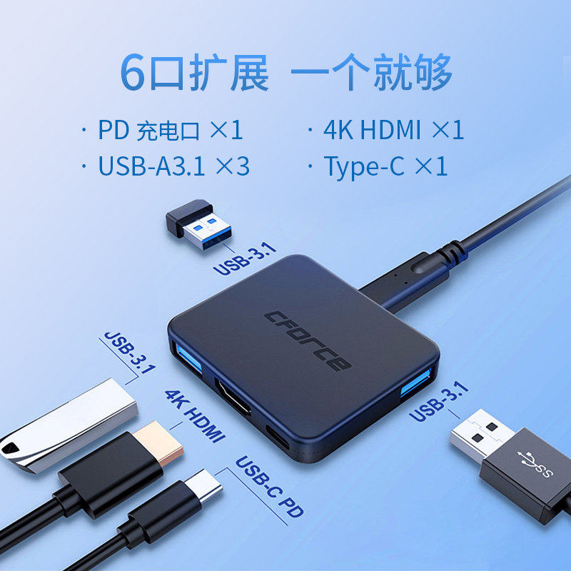 Snowkids拓展坞usb扩展器直插USB转4USB3.0转换器Typec高清视频hdmi适用笔记本电脑苹果USB多接口扩展分线器