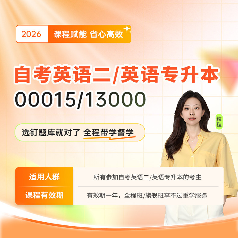2026年4月00015自考英语二网课13000英语专升本视频课程教材试卷
