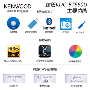 建伍KDC BT660U蓝牙汽车CD机发烧主动分频DSP延时A09无损升级M08S