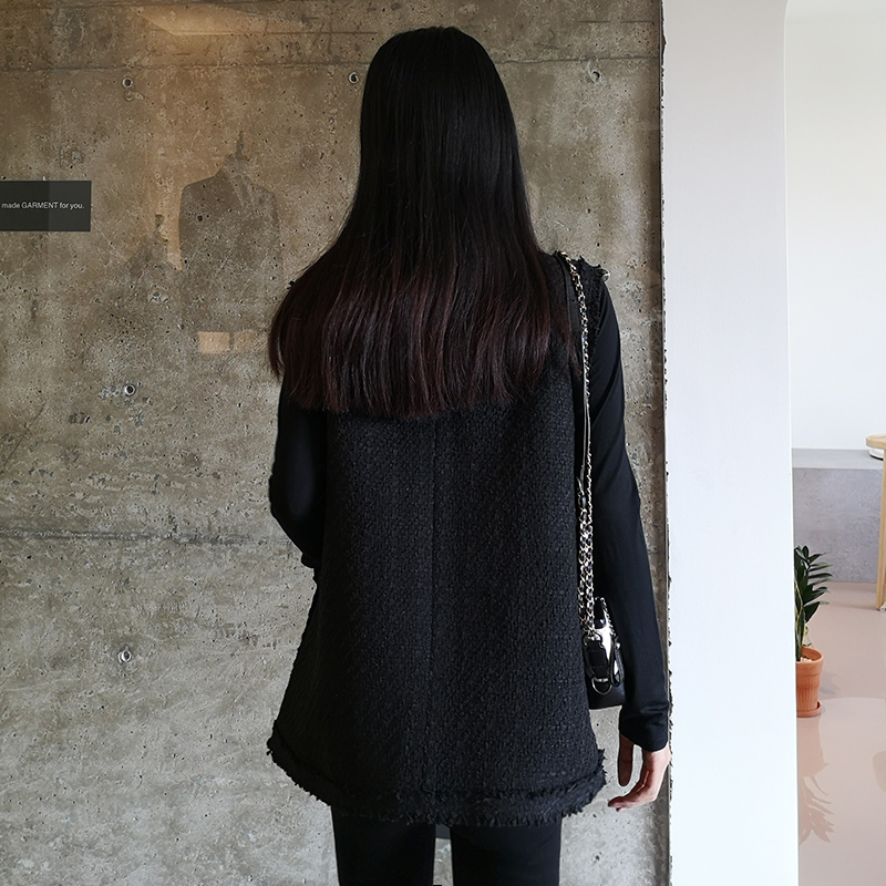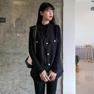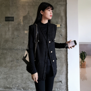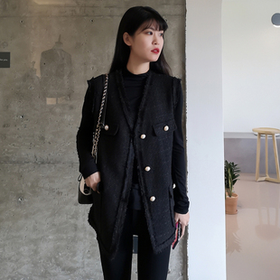 宽松无袖 新款 叠穿上衣潮 黑色卡通刺绣针织马甲外套女秋装 超重工