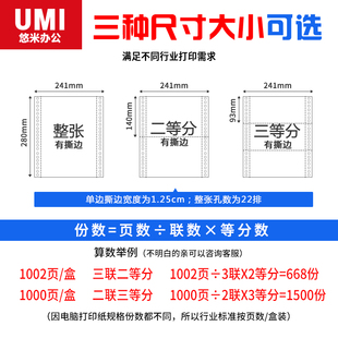 umi悠米电脑打印纸三联二等分四联五联二联两联三等分241联单发票清单3联针式 打印机纸出库送货票据批发一联