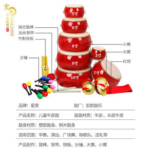 儿童鼓牛皮鼓小鼓大堂鼓幼儿园鼓儿童玩具鼓敲打鼓锣鼓镲打击乐器