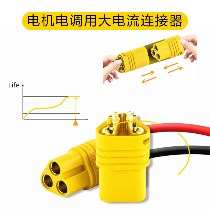 Amass艾迈斯MT60 MT30插头三芯公头三孔母头连接电机电调大电流