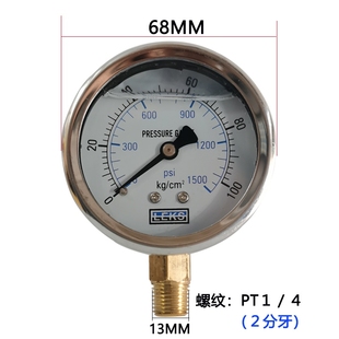 250KG液压表油压表 100 不锈钢外壳YN60耐震压力表防震抗震10 150