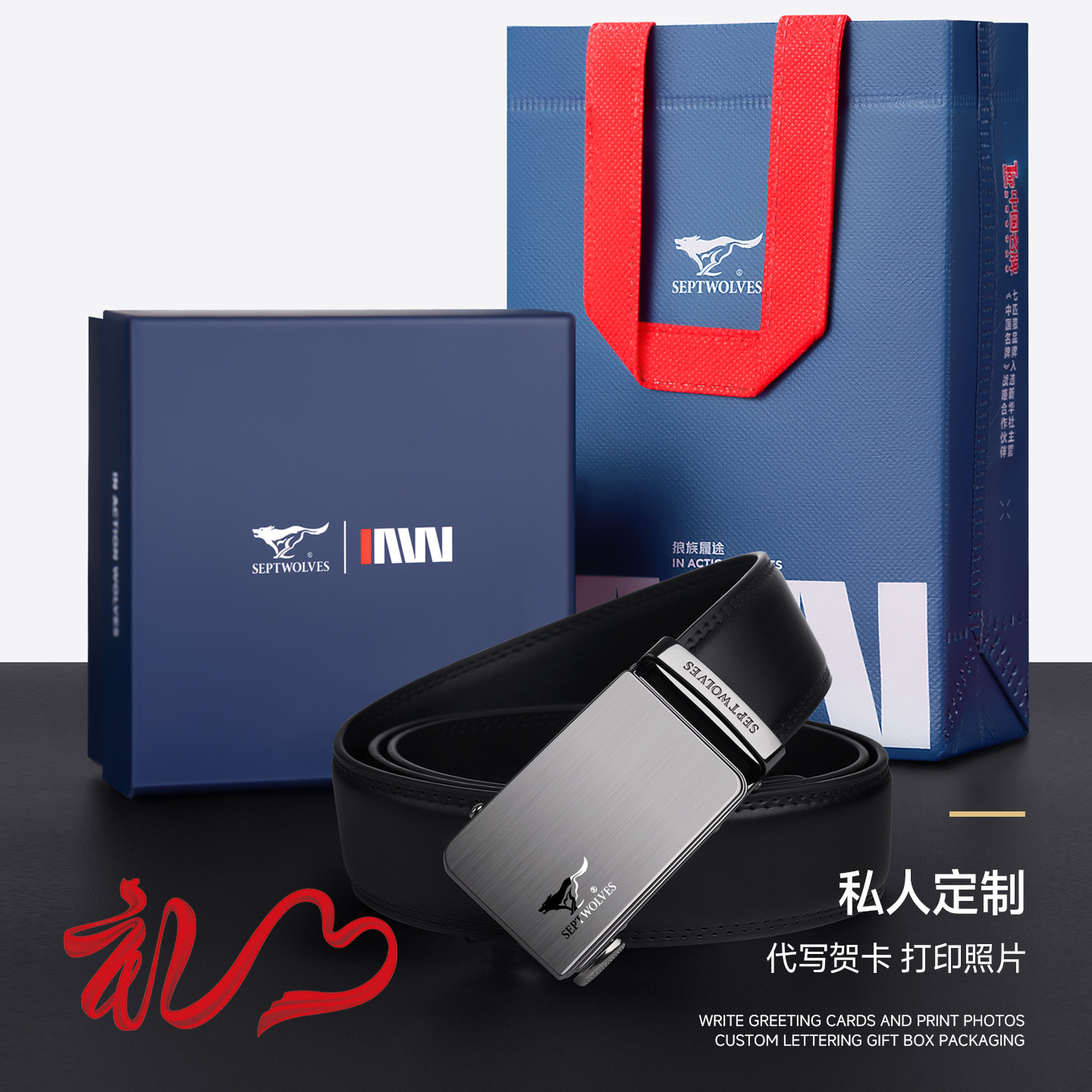 腰带礼物商务品牌爸爸裤 简约牛皮裤 带 真皮皮带2026新款 七匹狼男士