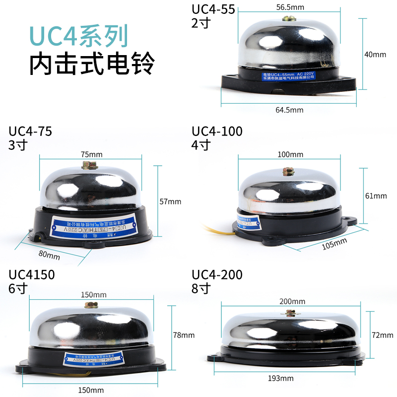 8寸 内击电铃工厂车间学校单位用打铃器上班下课220V电铃2