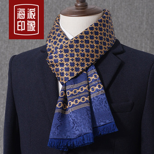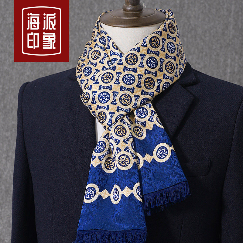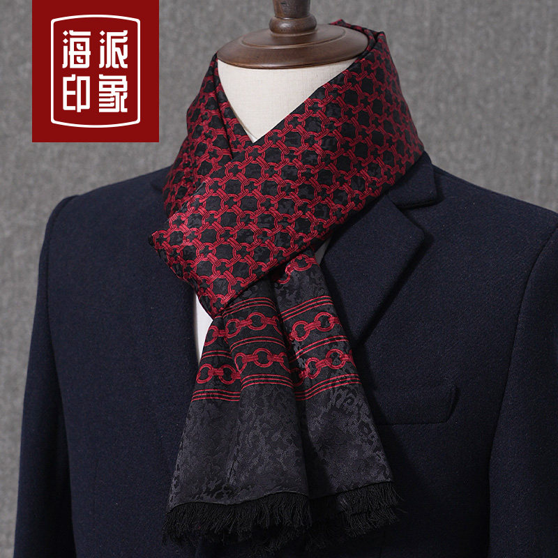 长款 真丝围巾中年丝巾秋冬季 韩保暖商务拉绒加厚送礼 男士 2024新款