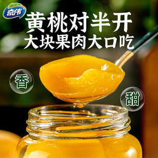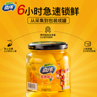 4瓶 什锦罐头480g 奇伟黄桃罐头冰糖糖水新鲜玻璃瓶装 水果罐头正品