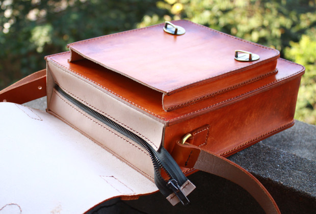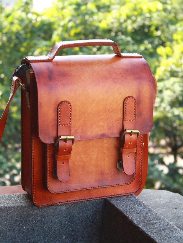 斜跨单肩 邮差包剑桥包 手提包 头层牛皮植鞣革竖款 手工定制皮具