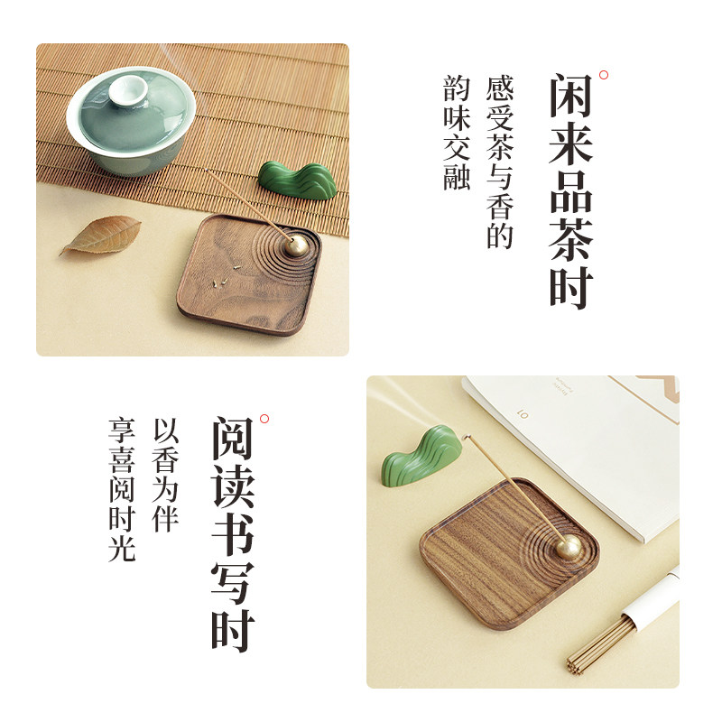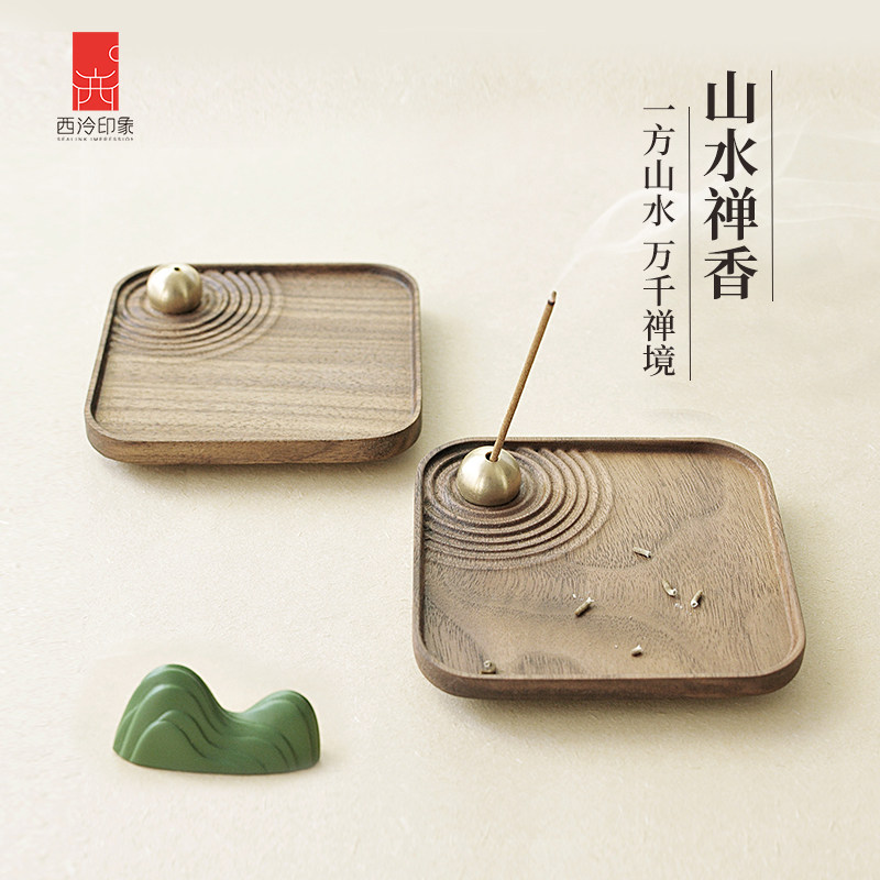 西泠印象山水禅香黑胡桃木家用香插香拖线香底座线香托盘摆件创意木质线香香炉禅意茶座卧室香薰送礼节日礼物