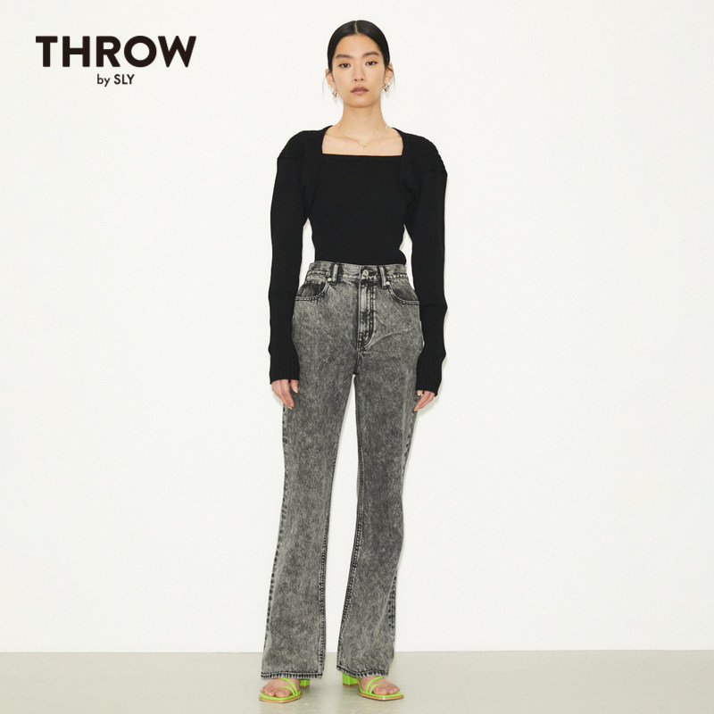 030FS011 黑色高腰微喇牛仔裤 SLY奥莱2023春季 1220 THROW系列