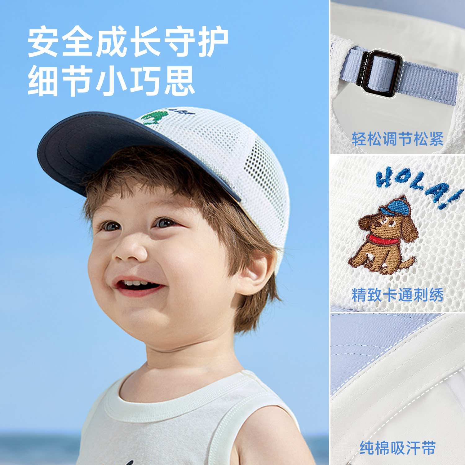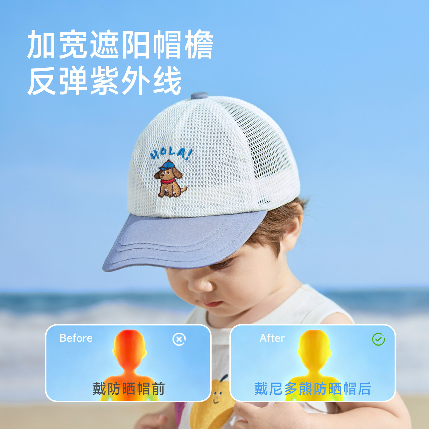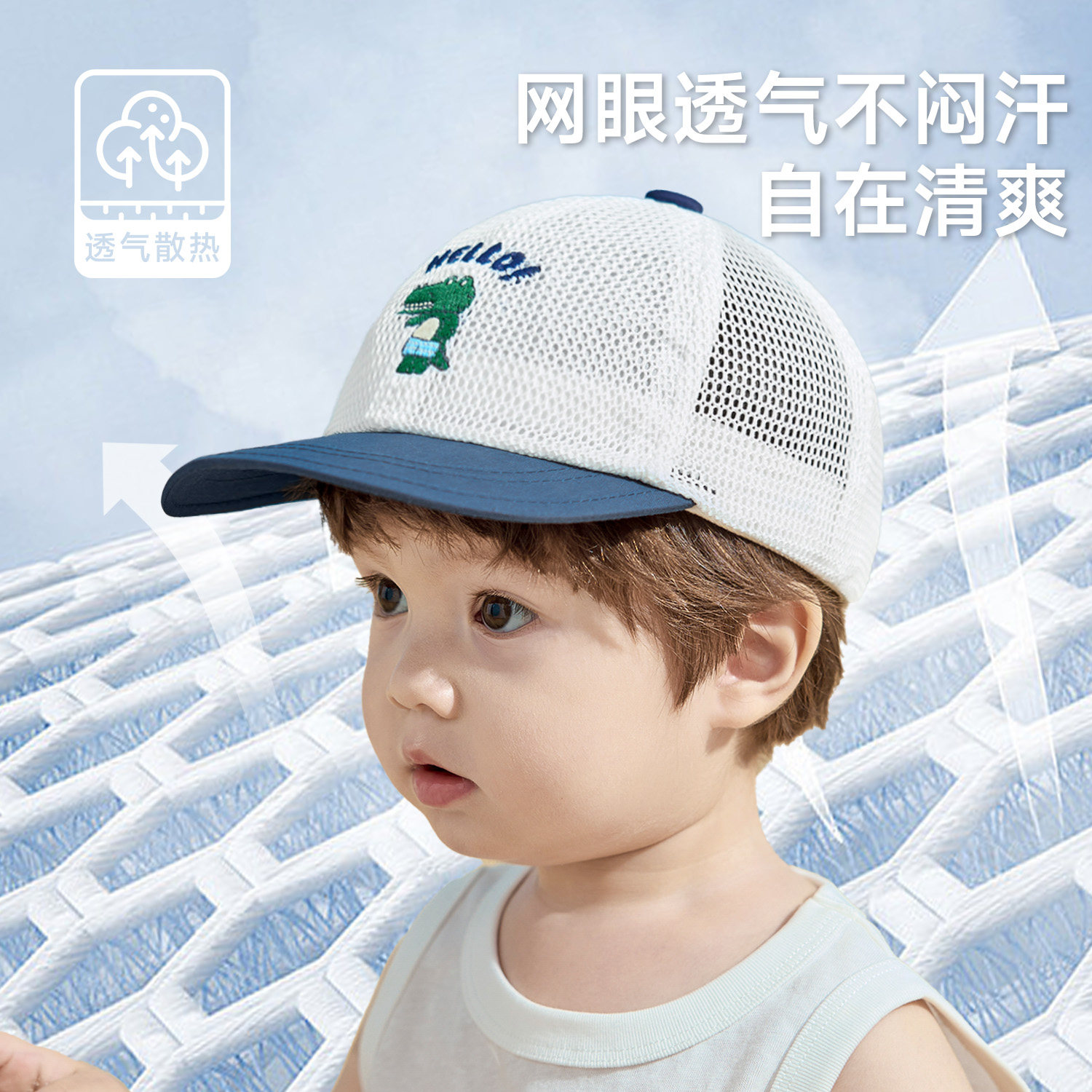 尼多熊宝宝鸭舌帽夏季 儿童棒球帽男女童帽子透气网眼帽婴儿遮阳帽