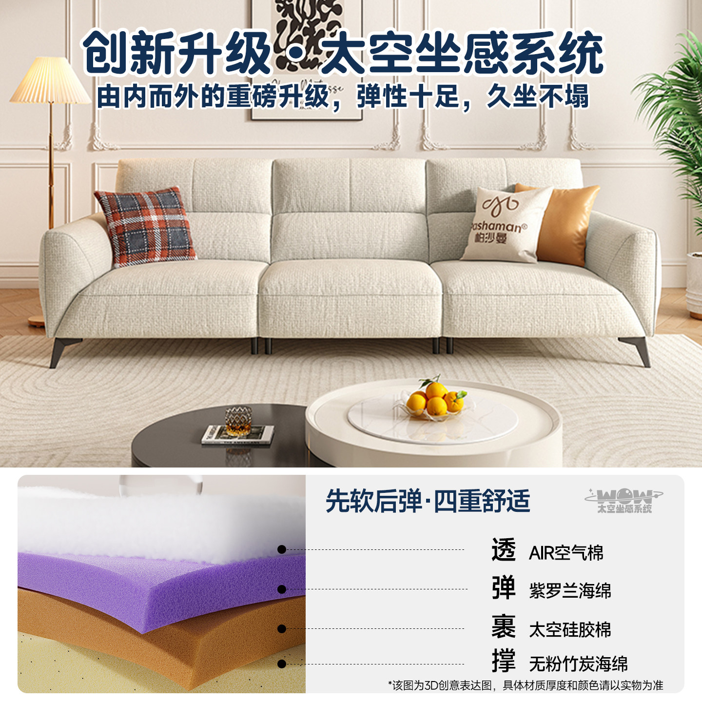 帕沙曼功能沙发电动猫抓布艺沙发小户型可调节云朵奶油风直排沙发