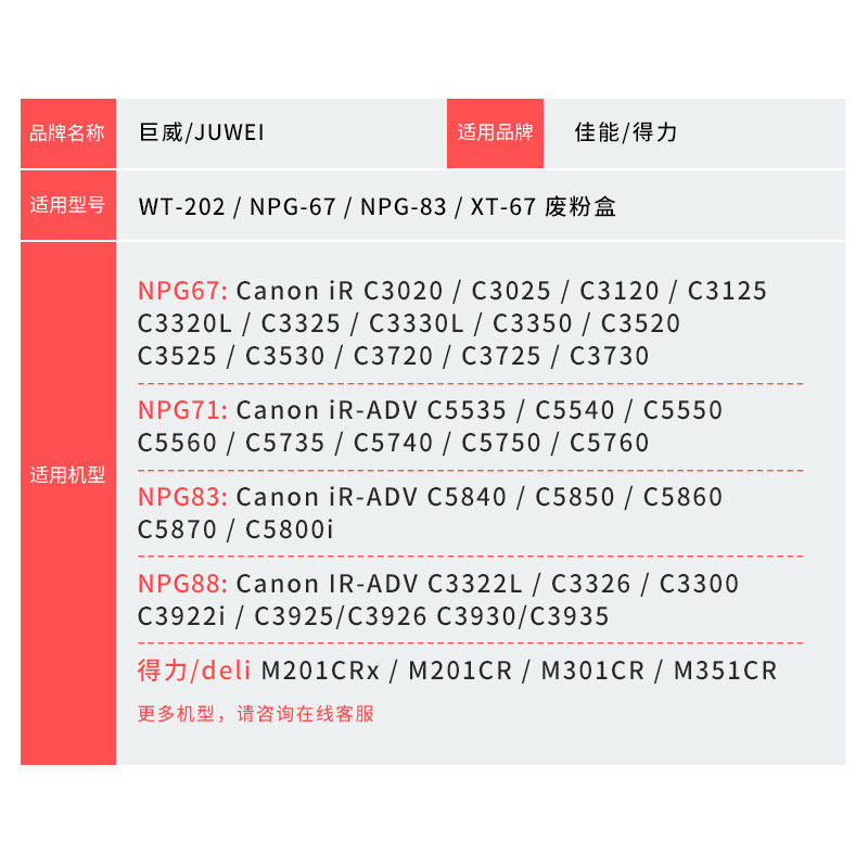 C3025 3320 3525 适用佳能C3020废粉盒C3222 C3125 3725废粉收集容器WT 3330 3720 C3325 202 3520 3350 3530