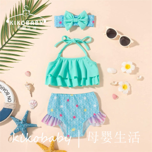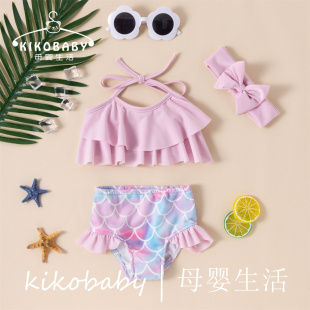 分体泳装 SWIMWEAR欧美外贸女童泳衣可爱美人鱼吊带挂脖泳装 短裤