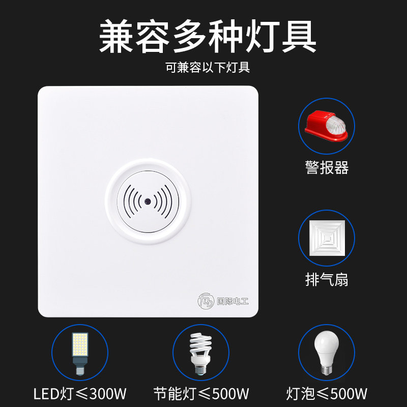 人体感应开关红外线智能二线楼道声控86型面板雷达延时灯座传感器