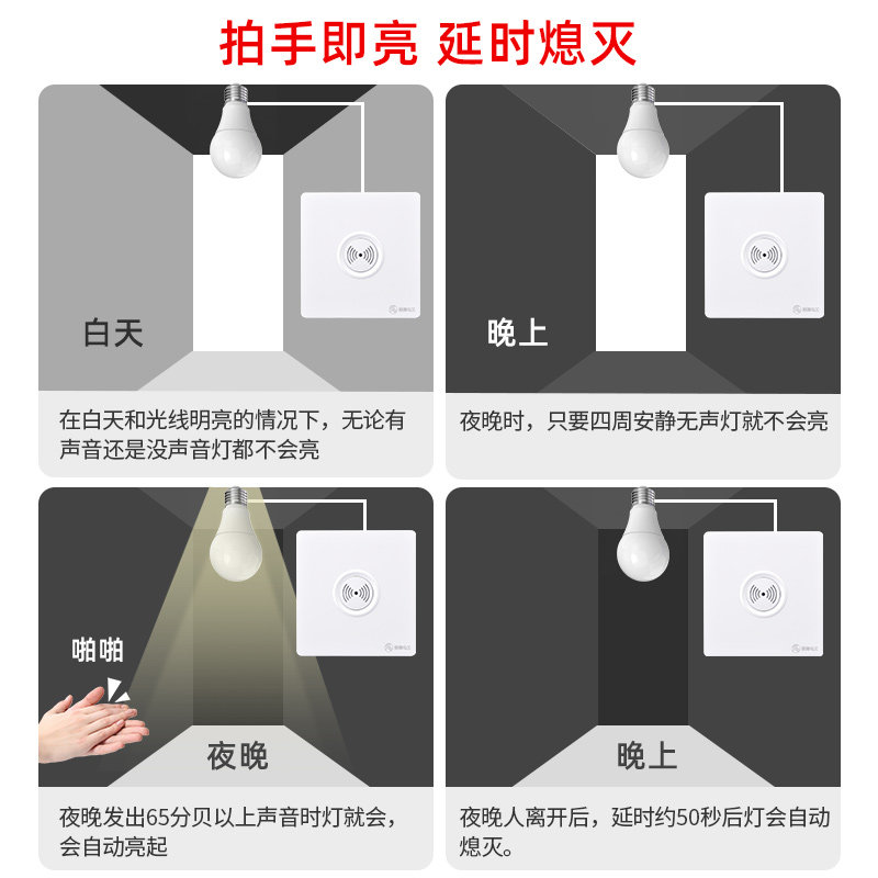 86型声光控加人体感应开关二合一红外线声控智能220V楼道延时面板