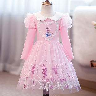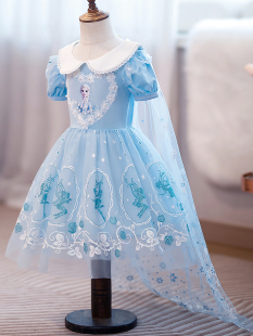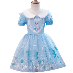 纯棉短袖 薄款 洋气爱莎公主裙子 女童连衣裙小女孩儿童3岁夏季 韩版