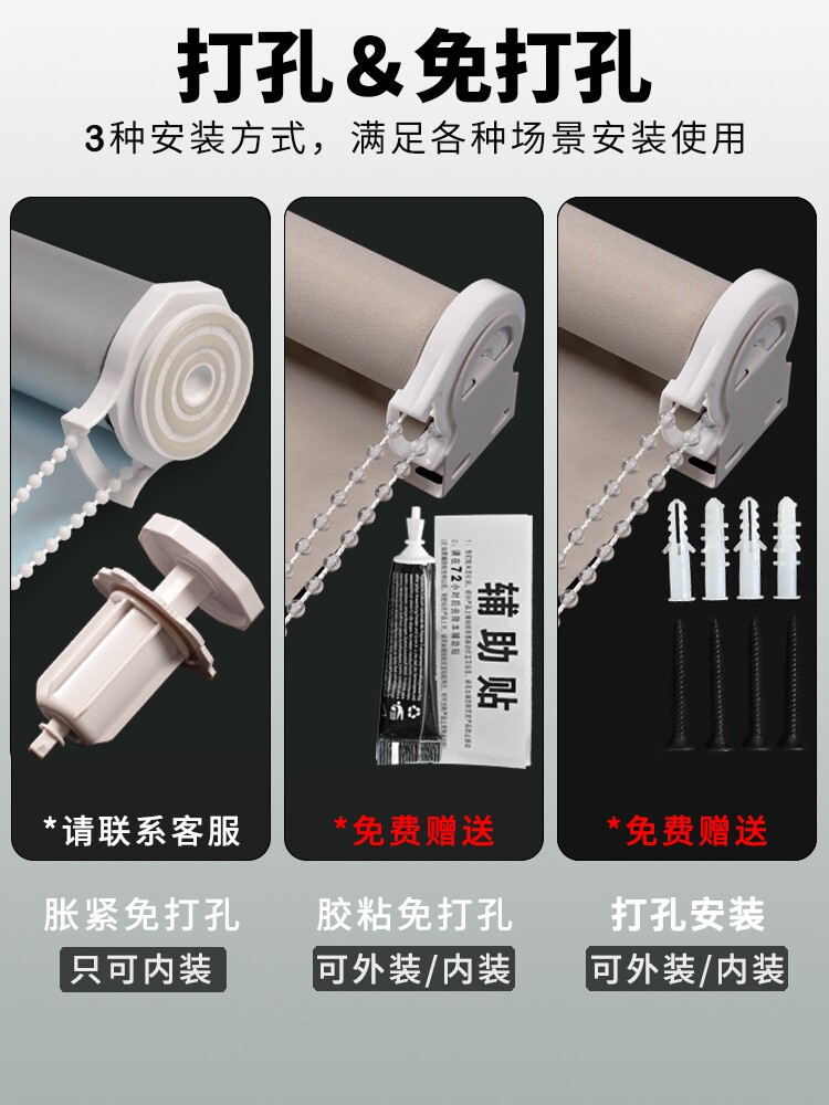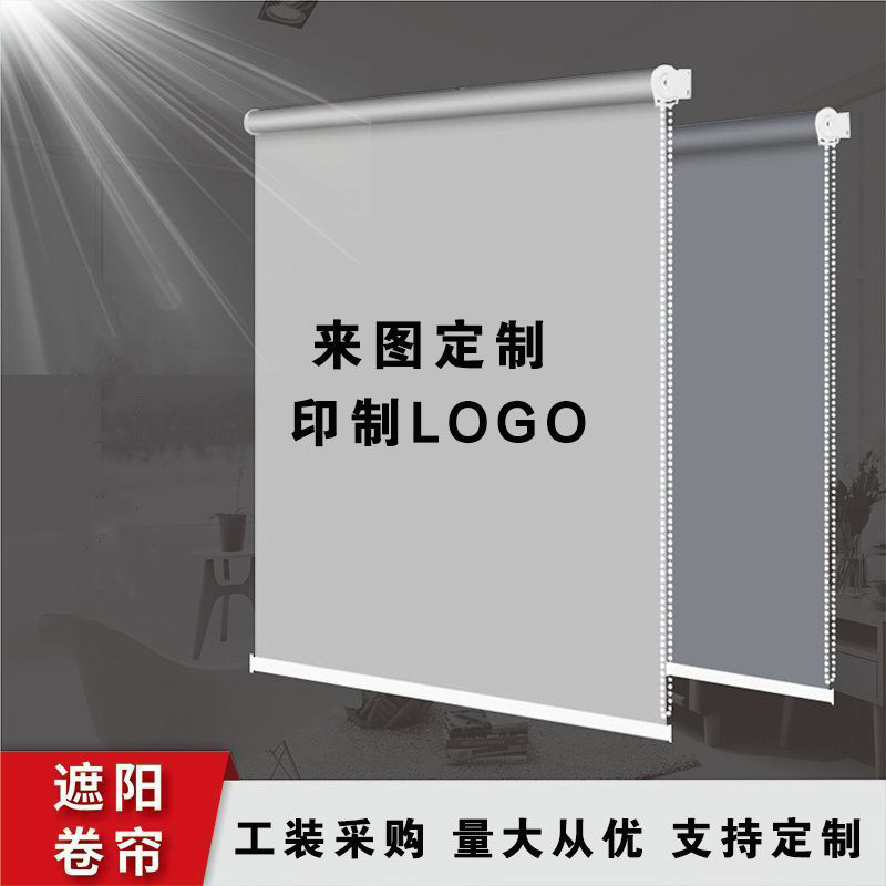 定制纯色卷拉窗帘升降办公卧室阳台厨房卫生间遮光防水简约免打孔