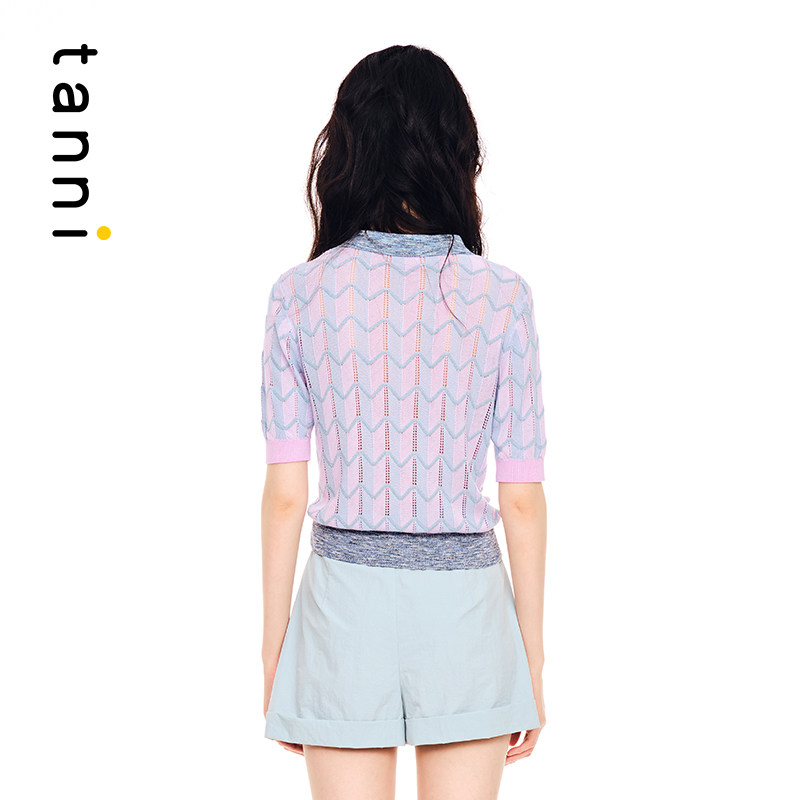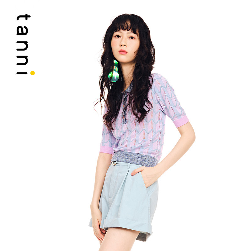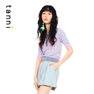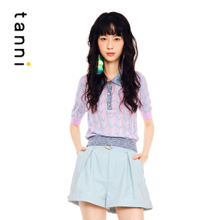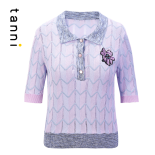 上衣女TL11KN025A 套头短袖 tanni春夏款 淑女风条纹刺绣polo针织衫