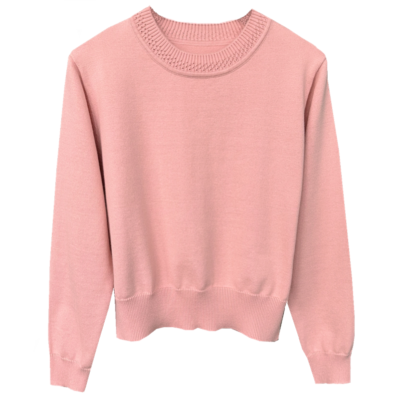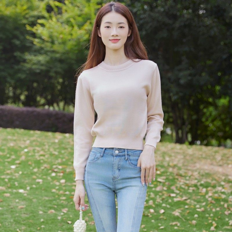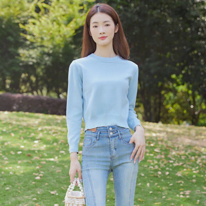 长绒棉针织衫 纯棉线毛衣 女式 高腰长袖 不静电 圆领套头短款 东润莲