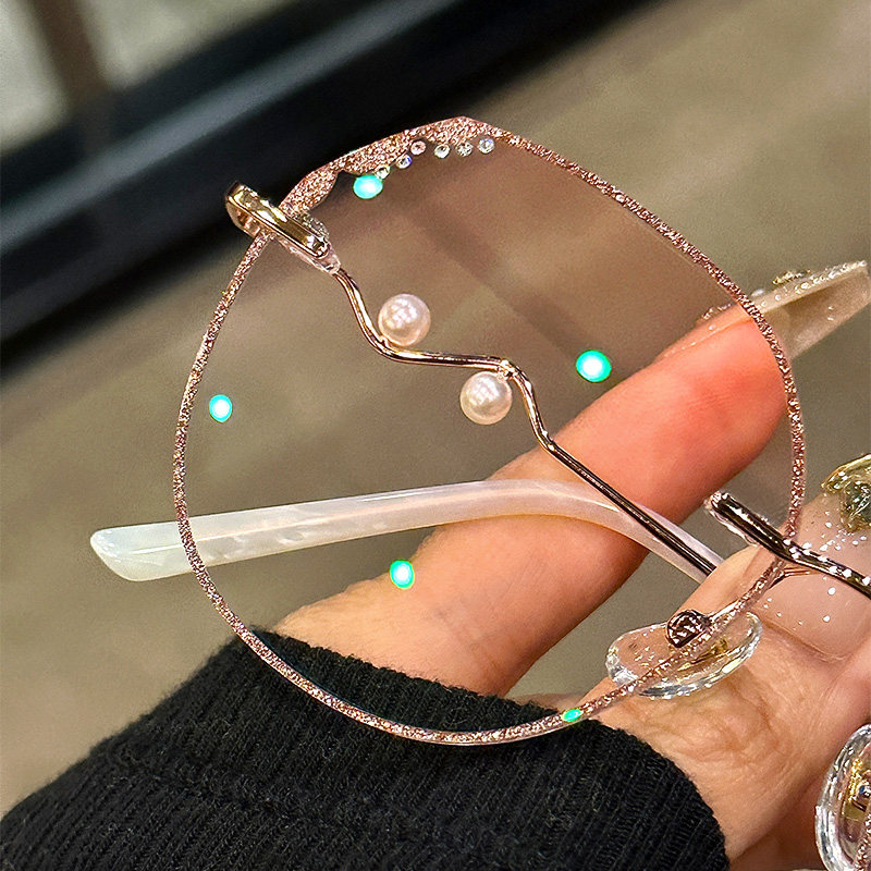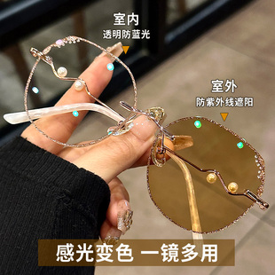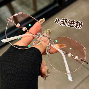 无边框切边眼镜女高级感可配近视感光变色渐进防辐射疲劳眼睛平光