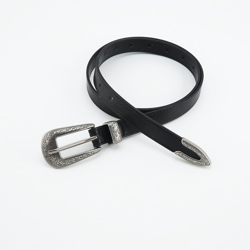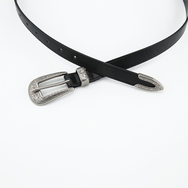 复古小众黑色细腰带 饰美式 雕花扣皮带女士ins风夏季 高级感百搭装