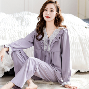 长袖 睡衣女款 纯棉休闲韩版 可外穿秋季 2025年新款 家居服套装 春秋款