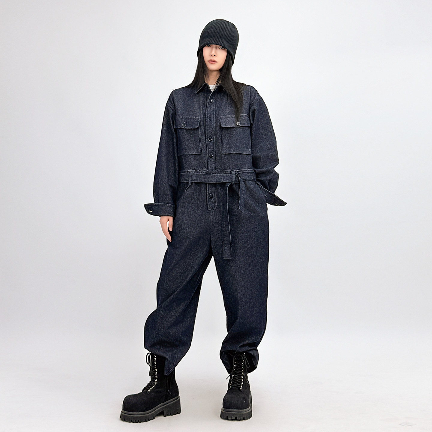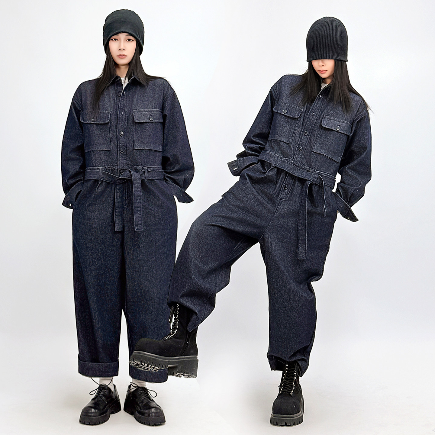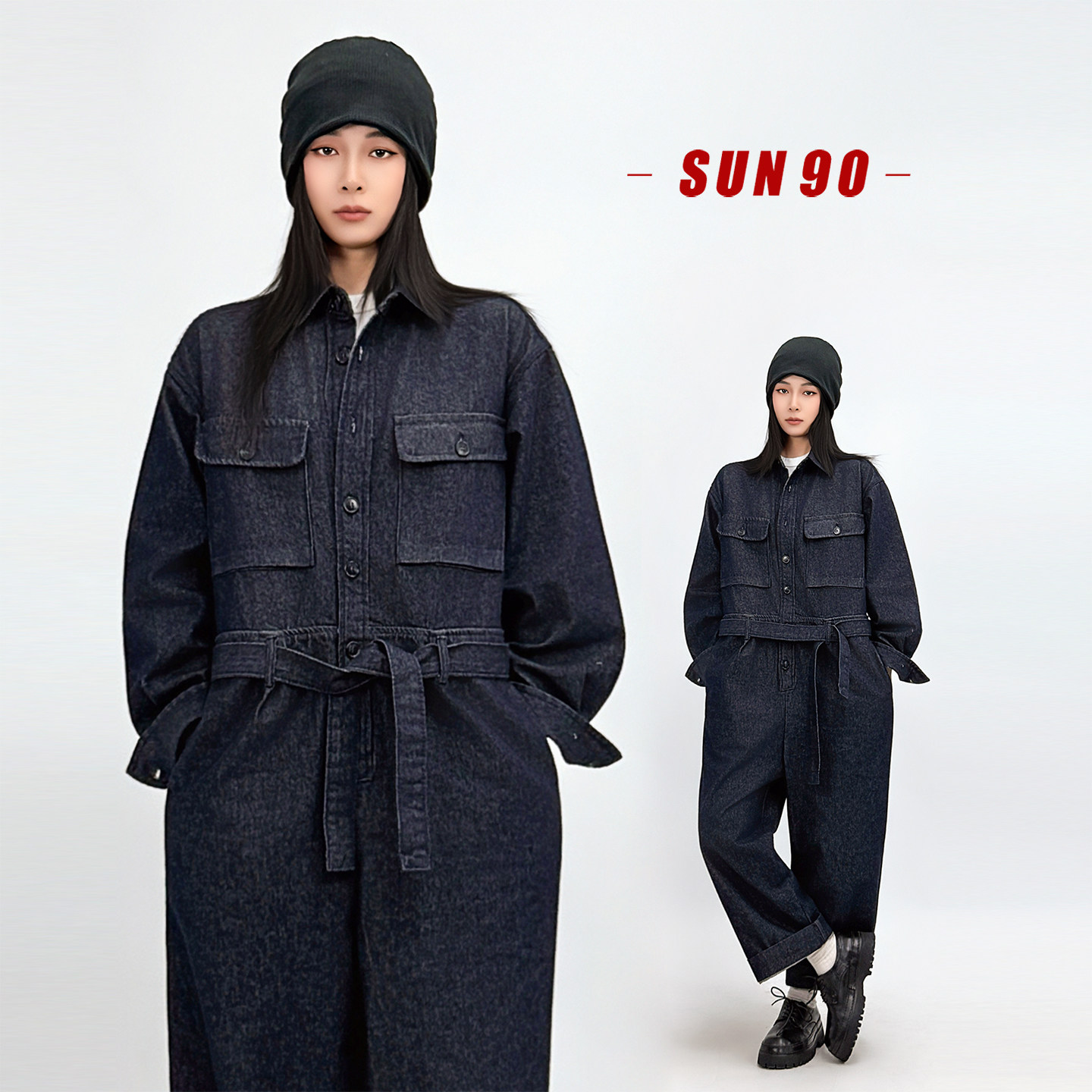 连身裤 SUN90 丹宁工装 女春秋别致酷飒风复古美式 酷飒风牛仔连体裤